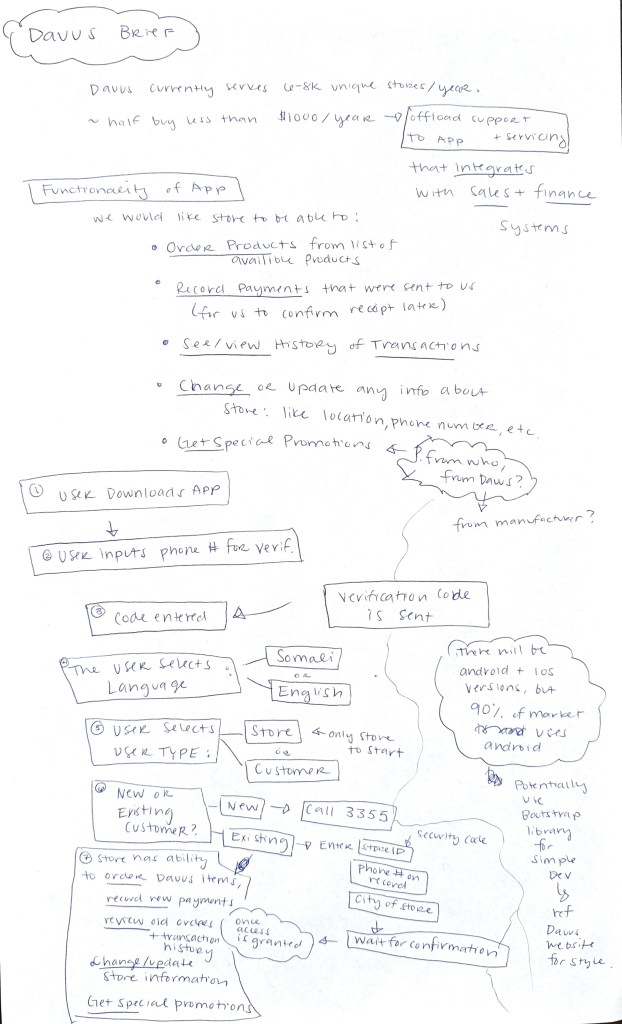 Design an app that would allow Dauus’s commercial customers(independent stores) to order products and would integrate well with existing Dauus systems.