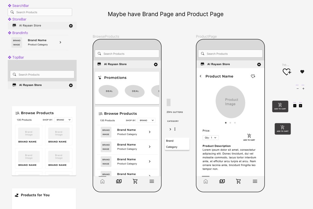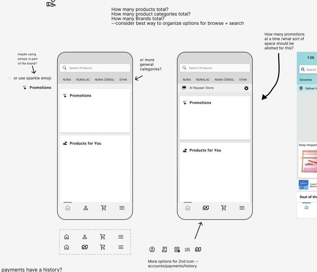 Since I am designing a store-type app, I decided to look at examples including the Amazon and Uniqlo apps to glean design patterns and consider ways of structuring the information and functionality.