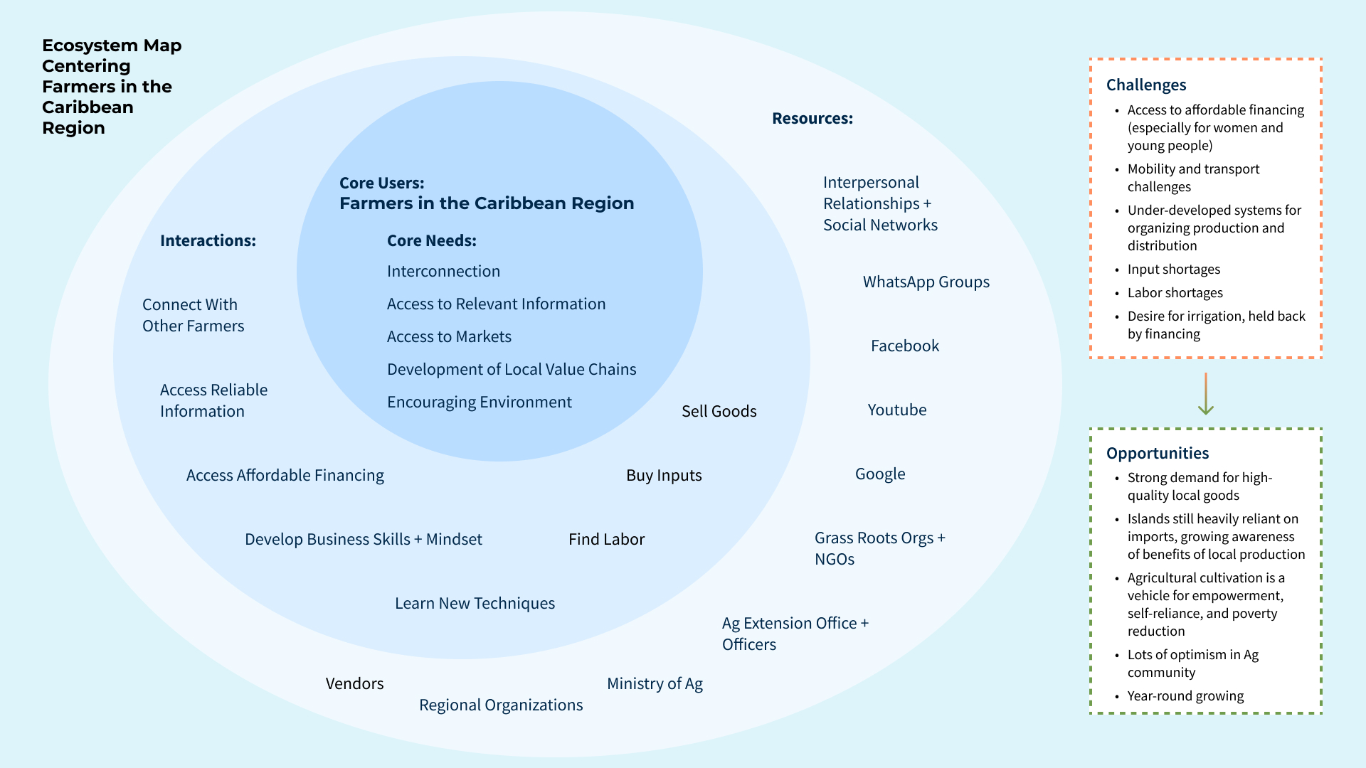 Our first week was spent working through the backlog of interviews and desk research that Carib Farm had accumulated but not yet synthesized.